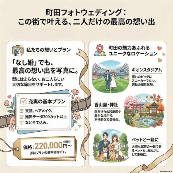 町田の魅力あふれるユニークなロケーションで、プロカメラマンが撮影!